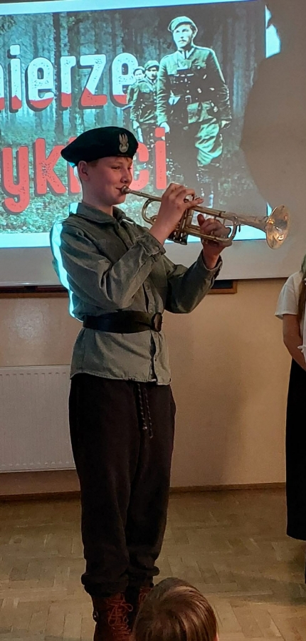 Uczniowie w ciekawy i poruszający sposób przedstawili losy żołnierzy podziemia niepodległościowego. W trakcie apelu przypomniano, że 1 marca obchodzimy Narodowy Dzień Pamięci Żołnierzy Wyklętych – święto ustanowione w hołdzie tym, którzy pozostali wierni swoim wartościom i ojczyźnie mimo trudnych i niebezpiecznych czasów. Część artystyczna została starannie przygotowana. Nie zabrakło wzruszających wierszy, krótkich scenek oraz informacji historycznych, które pozwoliły lepiej zrozumieć realia powojennej Polski. Szczególne wrażenie zrobiła piękna oprawa muzyczna – nastrojowe pieśni patriotyczne podkreśliły podniosły charakter uroczystości i wprowadziły wszystkich w atmosferę zadumy i refleksji. W tle wyświetlana była prezentacja multimedialna zawierająca archiwalne fotografie oraz najważniejsze informacje o bohaterach tamtych lat. Dzięki temu apel był nie tylko wzruszający, ale również bardzo wartościowy pod względem edukacyjnym. Była to cenna lekcja historii i patriotyzmu, która na długo pozostanie w pamięci jej uczestników.